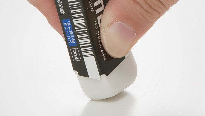 硬く、しなりにくい新配合の消しゴム。スリーブへの食い込みを抑止します。