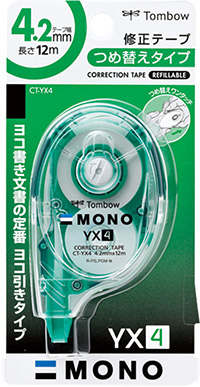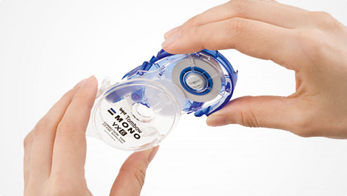 オフィス文章の基本スタイルは「ヨコ書き」です。だから、修正テープは「ヨコ引きタイプ」が断然オススメ。テープを90度ひねって作り出す独自のケースポジションが、安定した握り心地とペンで線をなぞるような引きやすさを実現します。