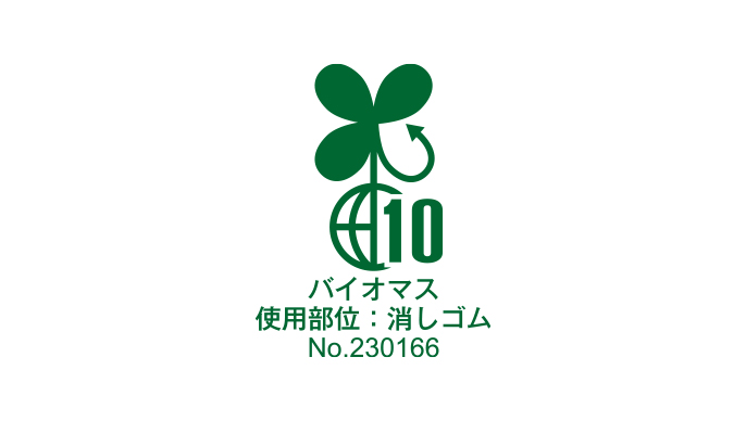 バイオマス由来材料を消しゴム本体の質量中10%以上配合し、バイオマスマークの認定を受けています。