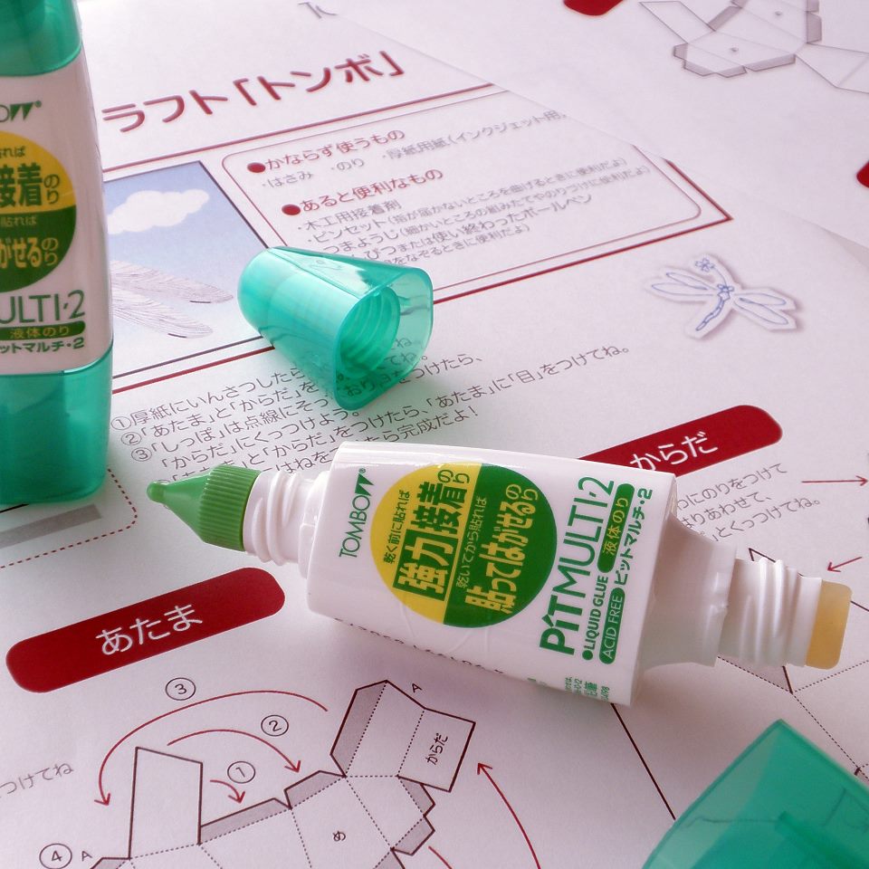 乾く前に貼れば「強力接着のり」、乾いてから貼れば「貼ってはがせる仮止めのり」の高性能な液体のりです。