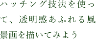 水彩画では水を加減することで簡単にできますが、色鉛筆ではどうでしょうか? 均一なうすぬりができること、これが基本になります。力を入れて濃くしていくのではありません。手加減はいつも同じです。うすぬりを繰り返して濃くしていきます。グラデーションを作るときにも重要なことです。